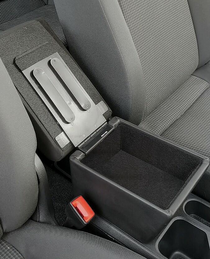 Neben dem Komfort bietet die Mittelarmlehne ein großzügiges Staufach, das deutlich mehr Platz bietet als serienmäßige Lösungen. Dokumente, Smartphones, Zubehör oder persönliche Gegenstände lassen sich sicher und griffbereit verstauen – ideal für Vielfahrer, Berufspendler oder alle, die zusätzlichen Stauraum im Fahrzeug schätzen.