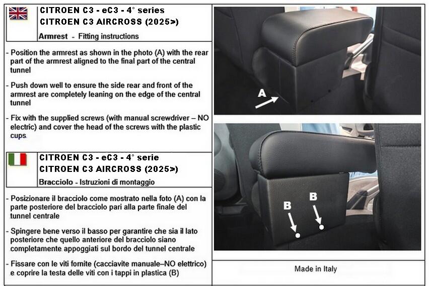 - Mittelarmlehne ist für Citroen Neu C3 (ab 2024>) 4° Serie maßgeschneiderte